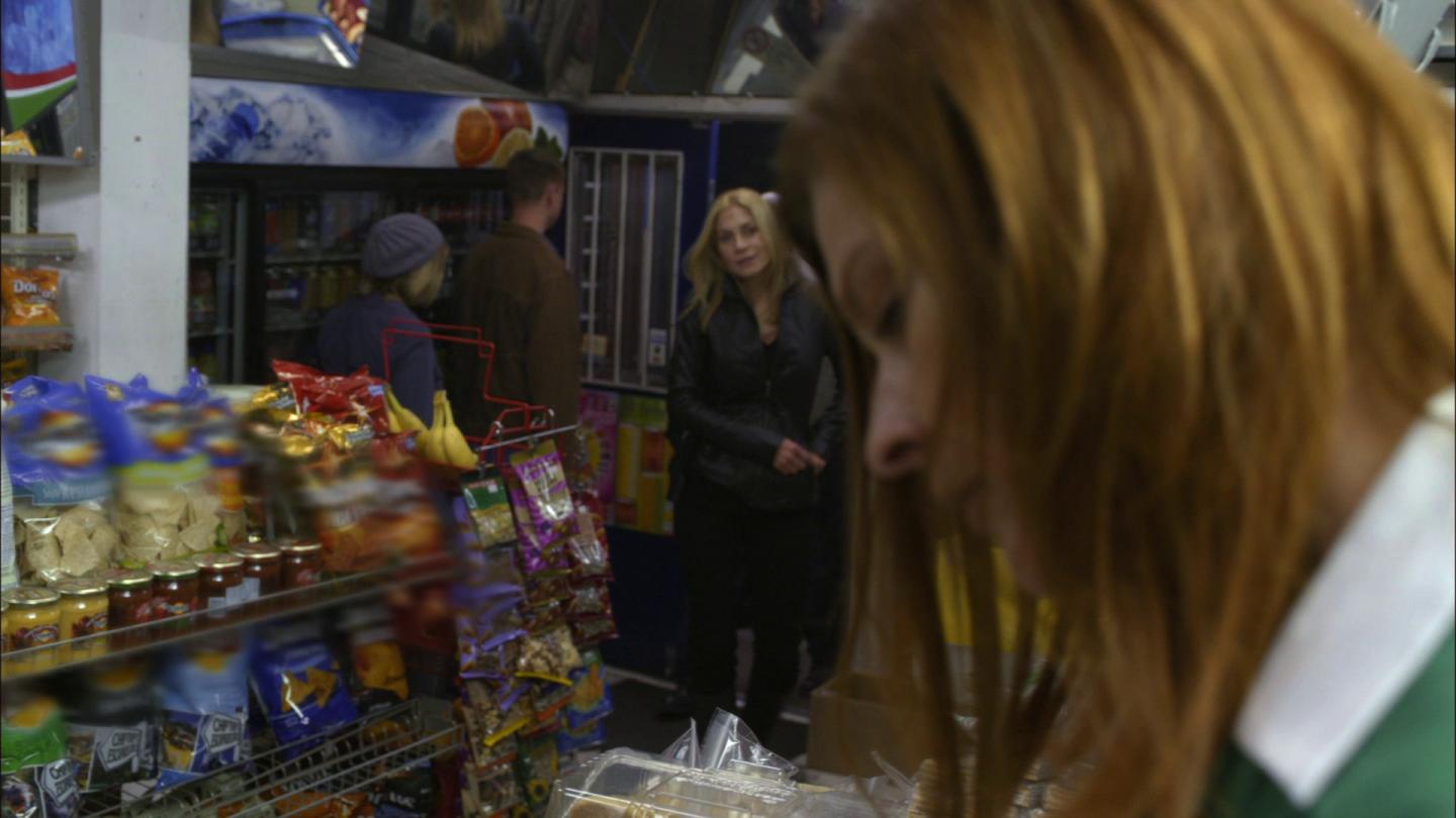 The convenience store scene, from 21:53-23:27 on the Blu-ray,